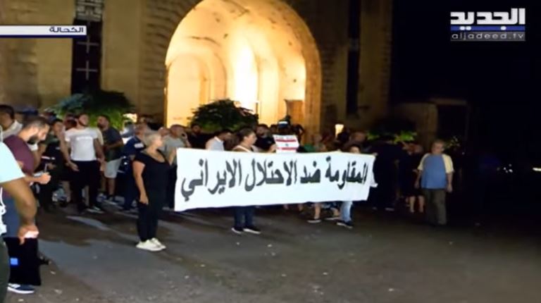 بالصورة - وقفة رمزية أمام كنيسة الكحالة "المقاومة ضد الاحتلال الايراني"