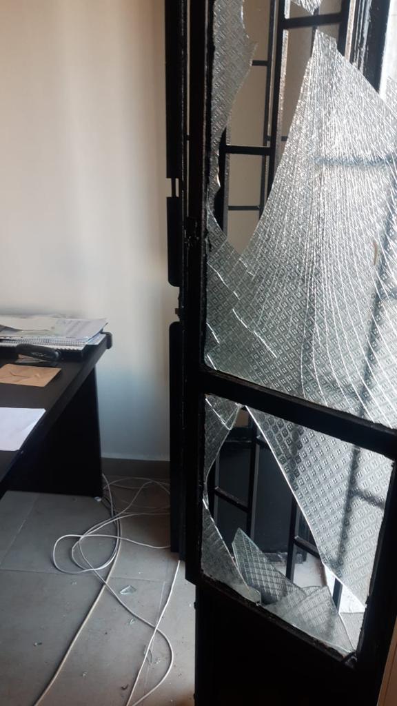 لحقت اضرار جسيمة في سطح المبنى وتحطم زجاج أحد مكاتب الأمن العام في السراي .