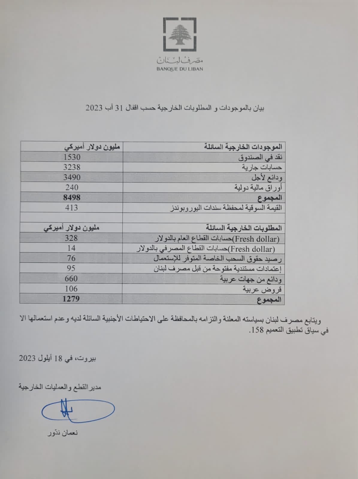 إليكم ما جاء في بيان مصرف لبنان حول الموجودات والمطلوبات الخارجية