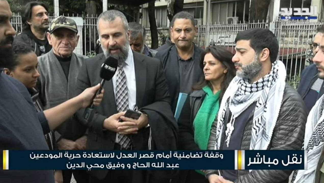 وقفة تضامنية أمام #قصر_العدل لإستعادة حرية المودعين عبدالله الحاج ووفيق محي الدين pic.twitter.com/MTDzrjxoLi — al jadeed news (@ALJADEEDNEWS) November 20, 2023