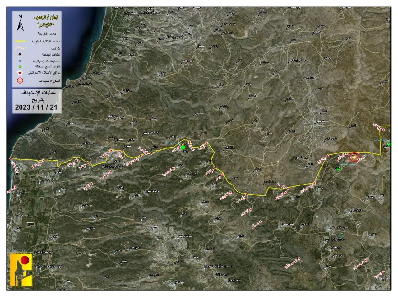 فرح عمر والشهيد ربيع المعماري وسائر الشهداء المدنيين، هاجم مجاهدو المقاومة الإسلامية عند الساعة 03:45 من بعد ظهر يوم الثلاثاء 21-11-2023 بالصواريخ الموجهة تجمعا لجنود العدو الصهيوني داخل