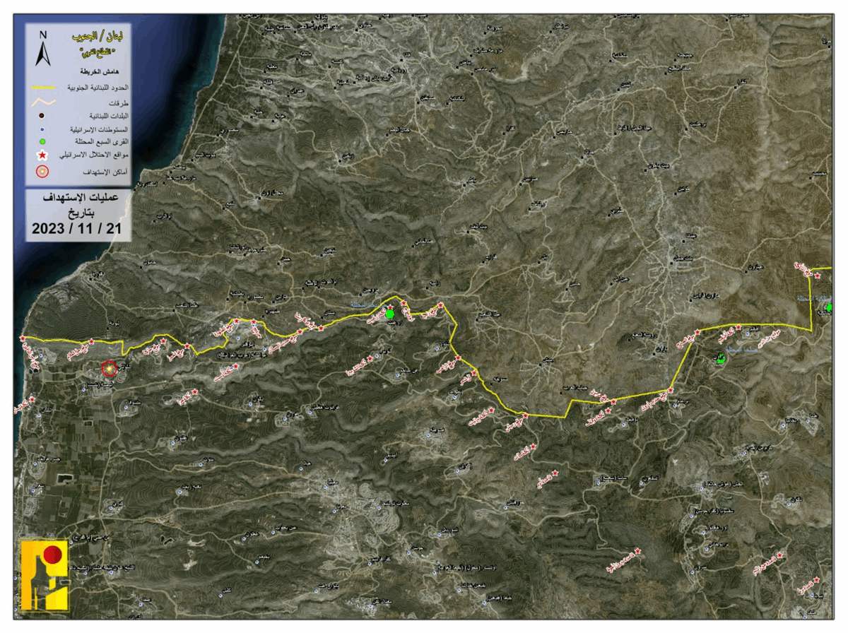 الله اعلنت المقاومة الإسلامية في بيان انه "دعماً لشعبنا الفلسطيني الصامد في قطاع غزة وتأييداً لمقاومته الباسلة والشريفة، وردا على قصف العدو الصهيوني لمصنع الالمنيوم في منطقة الكفور شمال مدينة النبطية، هاجم مجاهدو المقاومة الاسلاميةعند الساعة 4:15 من عصر يوم الثلاثاء 21-11-2023 بالصواريخ مصنعا تابعا لشركة رافايل للصناعات العسكرية الاسرائيلية في منطقة شلومي واصيب اصابة مباشرة وشوهدت النيران تندلع فيه."
