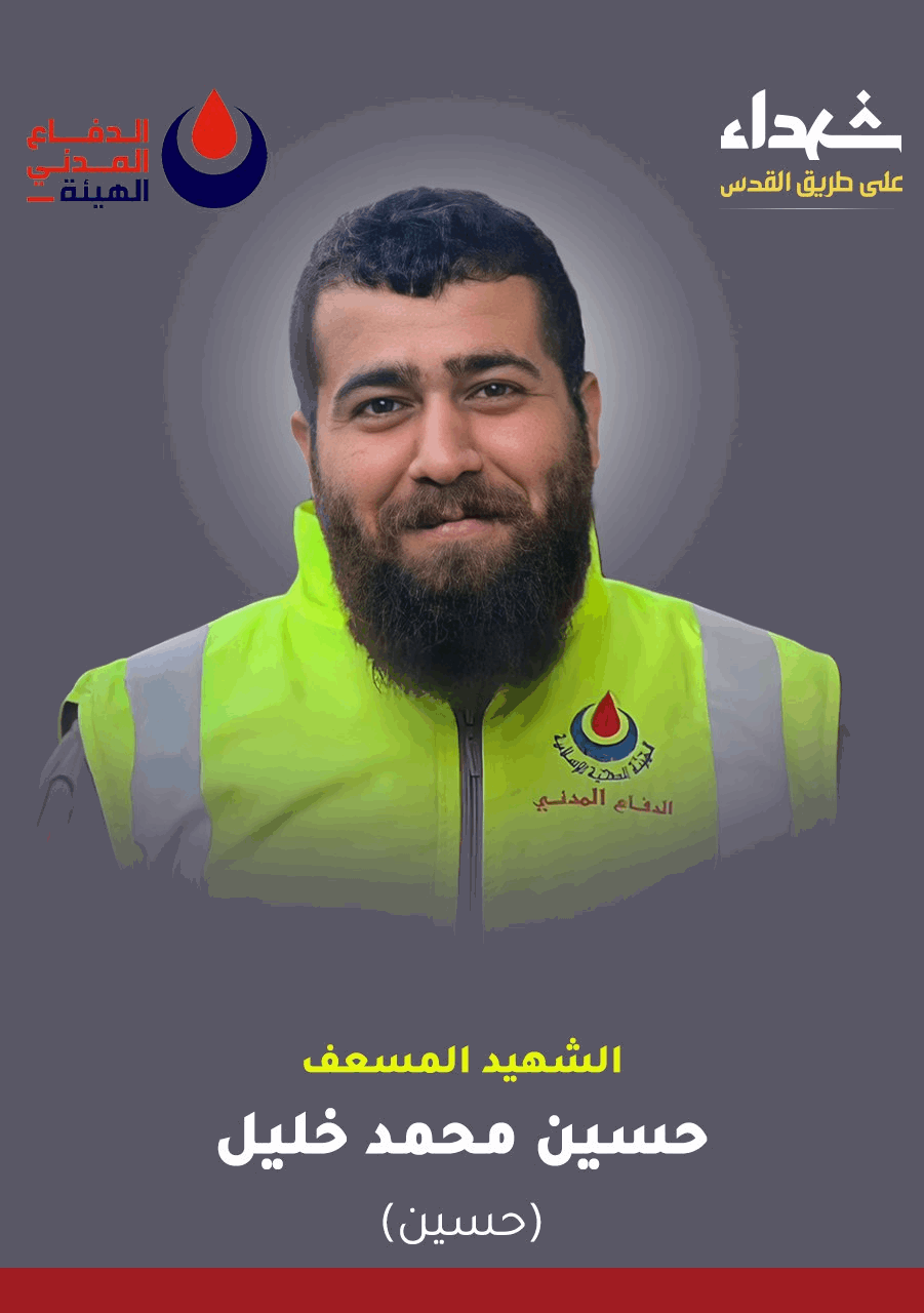 كما اعلن الحزب في بيان آخر: "بمزيد من الفخر والإعتزاز، تزف المديرية العامة للدفاع المدني - الهيئة الصحية الاسلامية الشهيد المسعف حسين محمد خليل "حسين" مواليد العام 1997 من بلدة برعشيت في جنوب لبنان، والذي ارتقى شهيداً على طريق القدس."