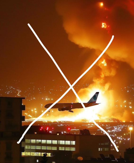 انتشرت على مواقع التواصل الاجتماعي صورة ادعى ناشروها انها لطائرة تابعة لطيران الشرق الاوسط كانت تهبط في مطار بيروت لحظة وقوع غارة استهدفت منطقة الشويفات العمروسية.