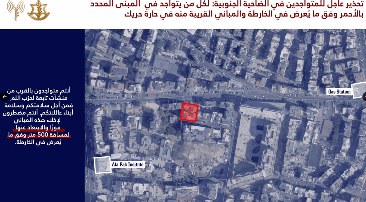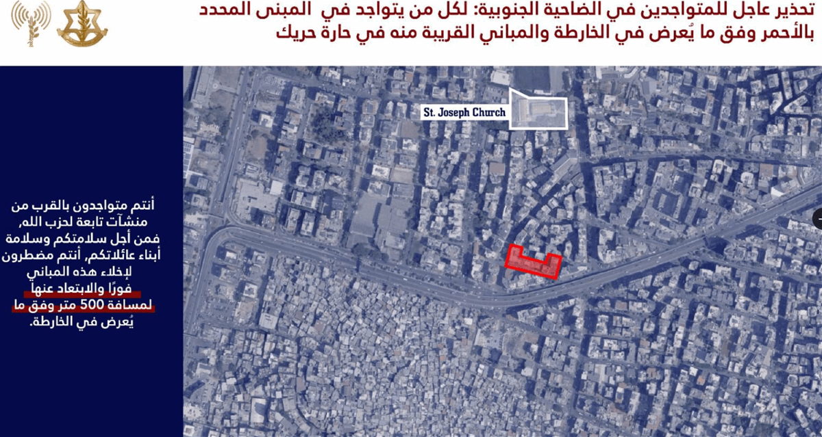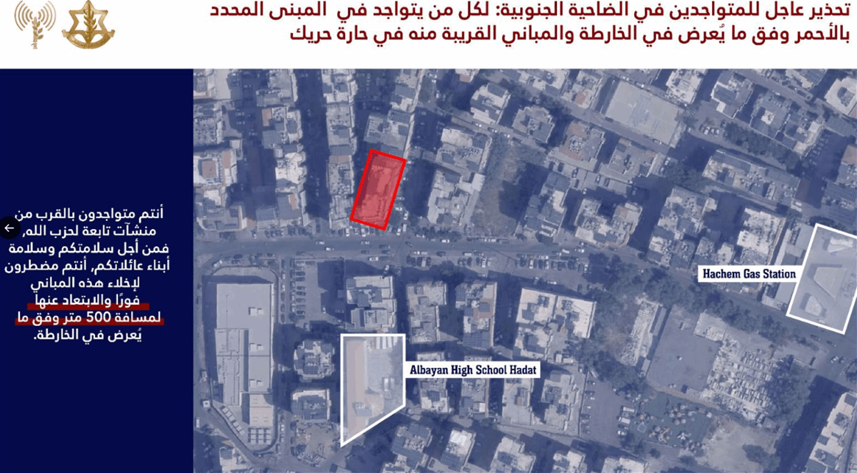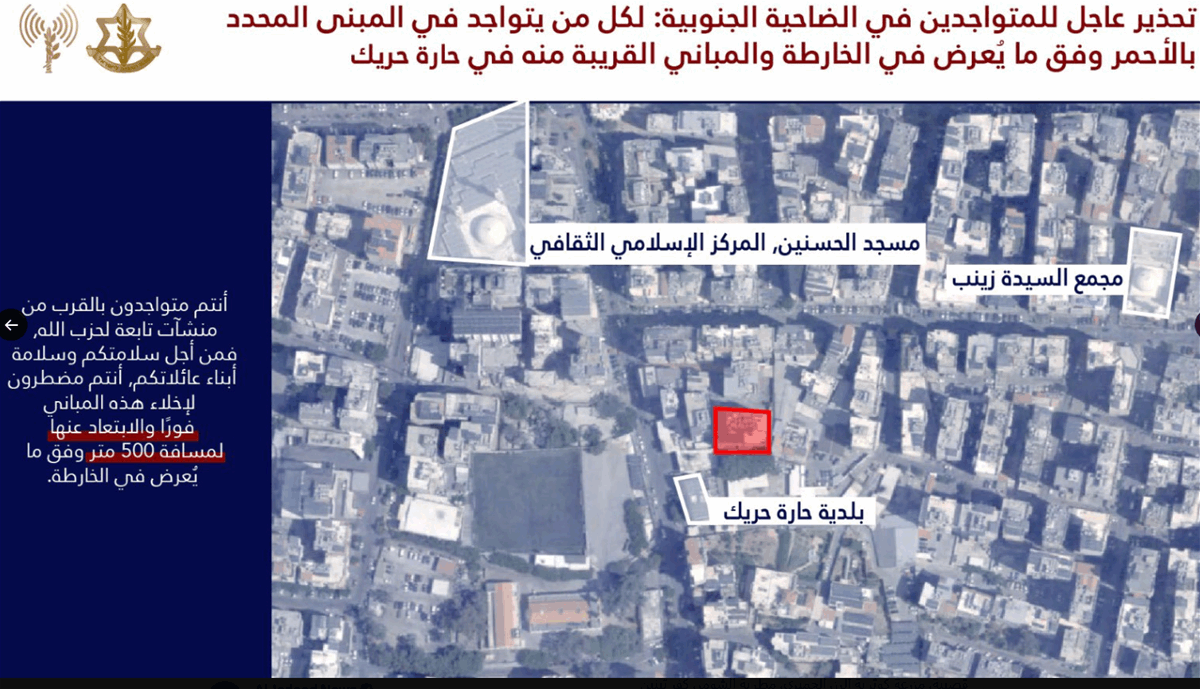 بالصور- جيش العدو يصدر تهديدا جديداً بقصف مبان في حارة حريك بالضاحية الجنوبية