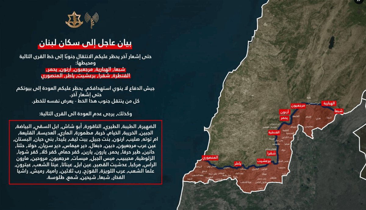 تهديد اسرائيلي : كل من ينتقل جنوب هذا الخط يعرض نفسه للخطر