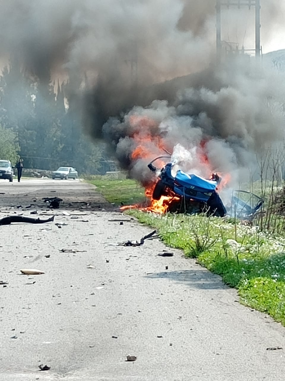 غارة إسرائيلية تستهدف سيارة على طريق دير الزهراني - رومين