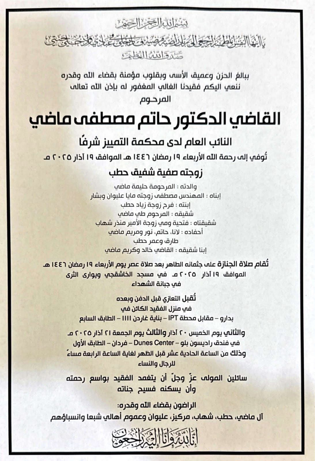 وفاة مدعي عام التمييز السابق حاتم ماضي
