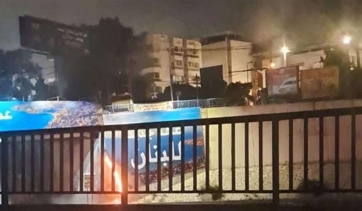 إحراق لافتات "عهد جديد للبنان" على طريق المطار مجدداً.