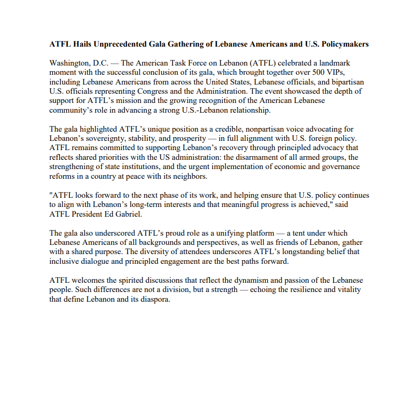 إيمان ATFL الراسخ بأن الحوار الشامل والمشاركة المبدئية هما أفضل السبل للمضي قدمًا. وبحسب بيان المجموعة، فقد رحبت ATFL بالمناقشات الحيوية التي تعكس ديناميكية الشعب اللبناني وشغفه، مشيرة الى إن مثل هذه الاختلافات لا تشكل انقسامًا، بل قوة تعكس المرونة والحيوية التي تميز لبنان وجاليته في الخارج.