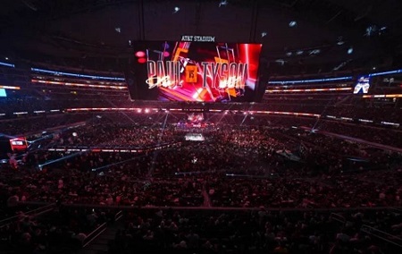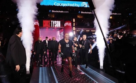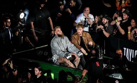 ودخل بول إلى الحلبة في سيارة إلى جانب شقيقه لوجان، على أنغام In The Air Tonight، مرتدياً شورت فضيّ وقفازات وسترة تبلغ قيمتها مليون دولار، فيما دخل تايسون ببساطة، مع رداءLFGO وقفازات سوداء.