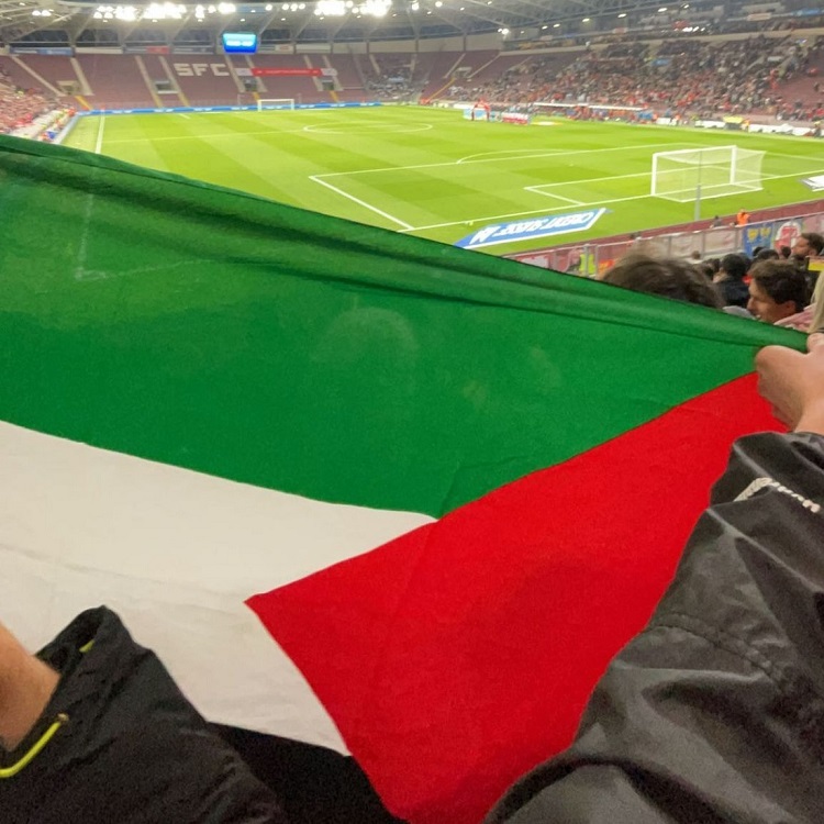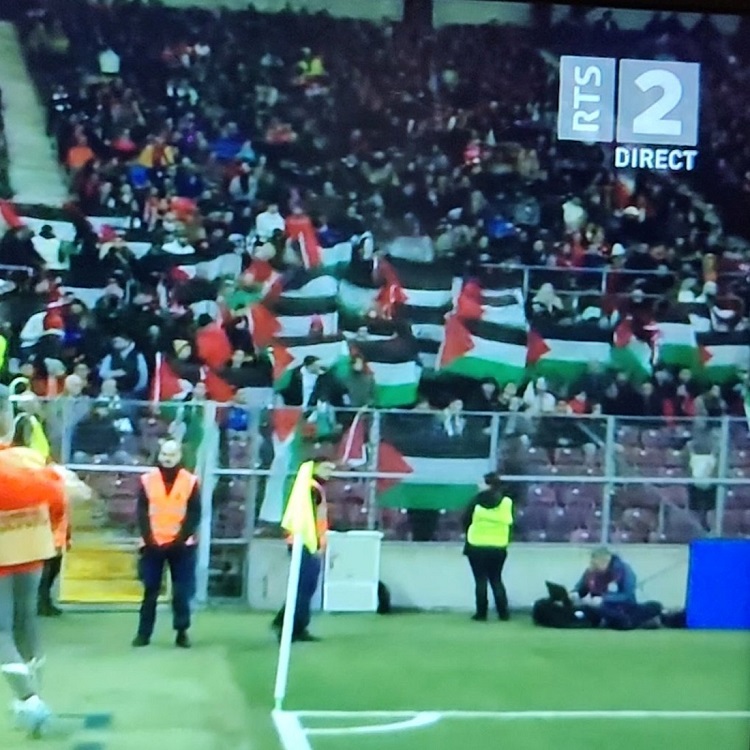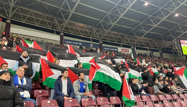 فقد رفع مشجعون سويسريون العشرات من الأعلام الفلسطينية ولافتات منددة بالاحتلال وسياسة الفصل العنصري على المُدرّجات، وسُمعَ في خلفية الفيديوهات موسيقى، وانتشرت الصور ومقاطع الفيديو على مواقع التواصل الاجتماعي.
