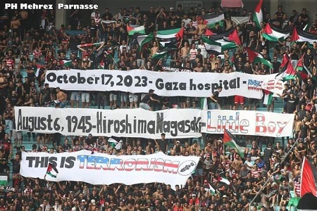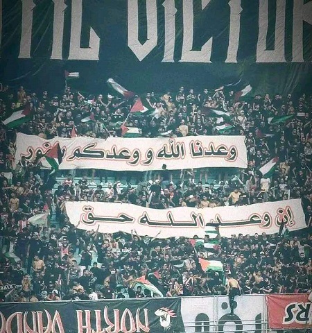 تحوّلت المباراة التي انتهت الى فوز النادي الإفريقي على ضيفه الأولمبي الباجي (3-1) على الملعب الاولمبي - حمادي العقربي ضمن الجولة السادسة من مباريات المجموعة الاولى لمسابقة الرابطة التونسية المحترفة الاولى الى "عرس فلسطينيّ" بكل ما في الكلمة من معنى، والصور تُعبّر عن ذلك.