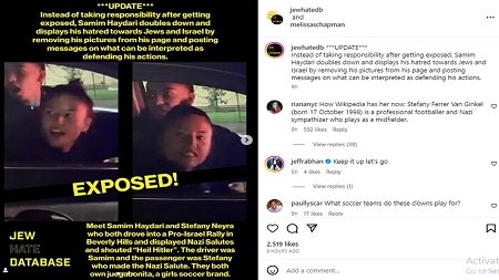 شنت الحسابات التابعة للوبي والحركة الصهيونية في الولايات المتحدة الاميركية حملة شرسة طالبت بالقبض على اللاعبة البرازيلية الأصل ستيفاني نيرا والشاب الأفغاني الأصل سميم حيدري.