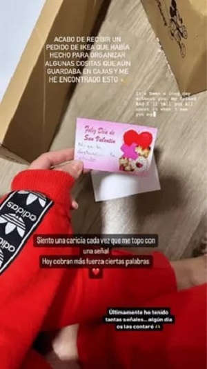 وجاء في رسالتها "تلقيت للتو طلباً من إيكيا كنت قد قدمته لتنظيم بعض الأشياء التي لا تزال لدي في صناديق ووجدت رسالة من خوسيه كتب فيها (عيد حب سعيد ... لن أنساك حتى من مسافة بعيدة)".