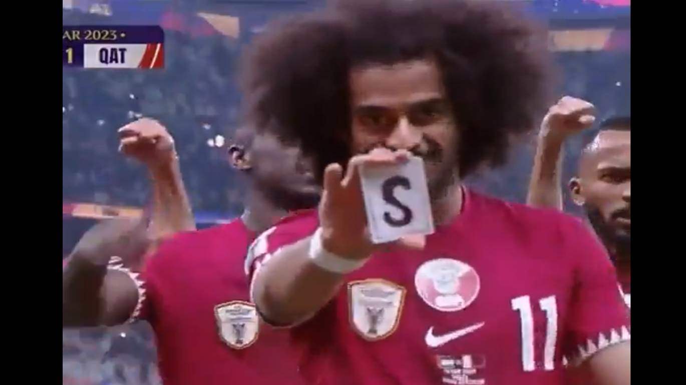 آسيا ونجم منتخب قطر، سر احتفاله خلال المباراة النهائية التي سجل فيها "هاتريك" في مرمى الاردن.