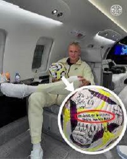 ويبدو أن بعض لاعبي السيتي سئموا من ختم التوقيعات على الكرات وقالوا "كفى"، وتبيّن ذلك من خلال صورة نشرها هالاند نفسه على متن طائرته الخاصة، وفيها أن اثنين من زملائه في الفريق، على وجه التحديد، سئما ولم يوقعا باسميهما، بل وقع