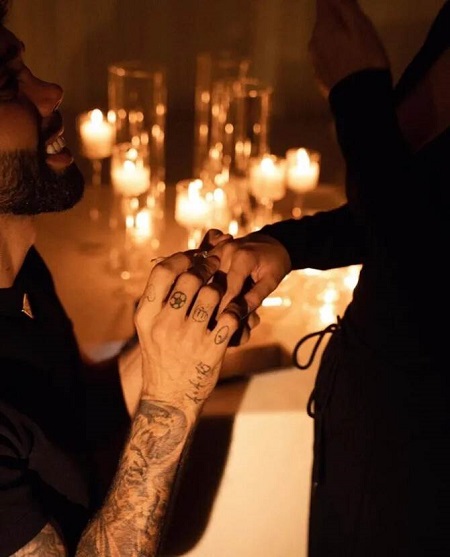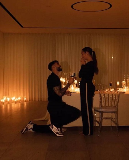 فقد انحنى رايا على ركبتيه، ليطلب الزواج من شريكته عارضة الأزياء تاتيانا تروبول، خلال عشاء أقيم على ضوء الشموع، ووثق مصور هذه اللحظات الرومانسية، التي تخللها عناق وقُبل وخاتم مثير للإعجاب.