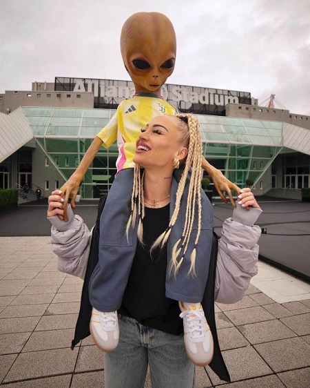 يوفنتوس الإيطالي، للسيدات والرجال، ظهرا معاً في جلسة تصوير، ولكن بصحبة كائن غريب بملامح فضائية، وفي هيئة إنسان.
