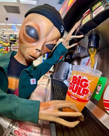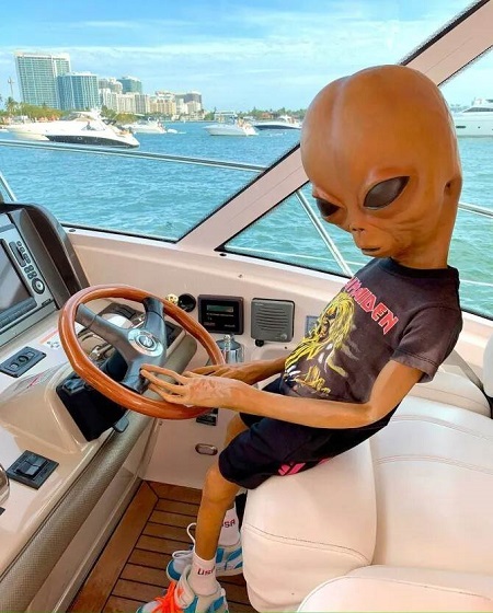 العالم، وهو ليس كائناً فضائيا حقيقيا بالطبع، بل هو جزء من دعامة لفيلم قديمة أنشأها أليكس مارتين.