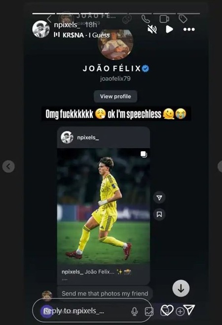 وكان جواو فيليكس شارك كبديل في المباراة، حيث نشر المصور عبر خاصية ستوري على إنستغرام، صوراً لمحادثة جمعته مع جواو فيليكس، الذي طلب منه إرسال الصور التي التقطها له، حيث بدا أنه أعجب بها كثيراً.