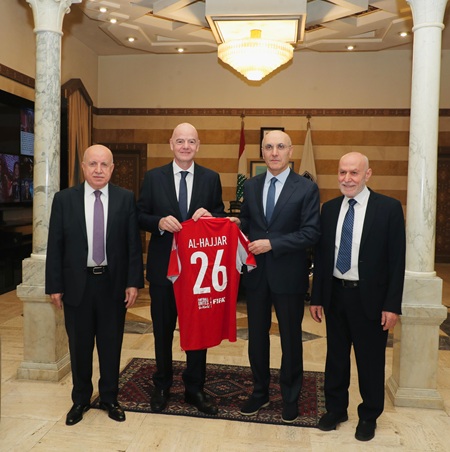 وخلال اللقاء، قدّم إنفانتينو للحجّار قميصاً رسمياً من الاتحاد الدولي لكرة القدم "فيفا" حمل اسمه، إلى جانب هدية تذكارية من الاتحاد، في لفتة تعبّر عن عمق العلاقات والتقدير المتبادل.